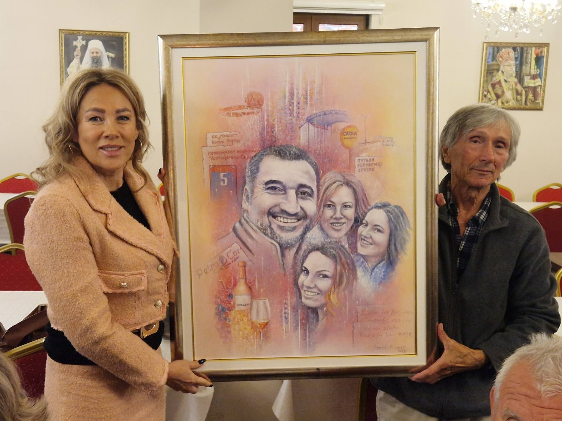 Čuveni kotorvaroški slikar Branko Rusmir je danas predao Ljerki Petrović umjetničku sliku sa likom i djelom supruga i najmlađeg majora Vojske Republike Srpske Aleksandra Saše Petrovića sa porodicom, jer je on bio istinski simpatizer Udruženja za promociju i značaj sportske rekreacije Kotor Varoš.
